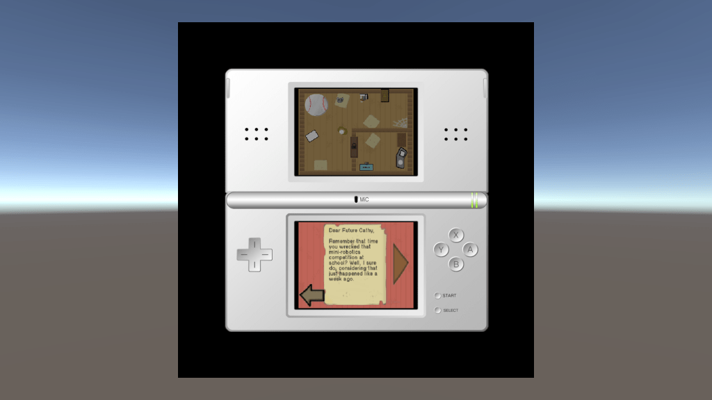 At the time, this was the most complex project I programmed, with a robust “examination” system that allowed you to look at top screen objects on the bottom screen, and text in the form of notes written by the siblings who buried the time capsule. Instead of collecting items and using an inventory to solve puzzles, the player must pay attention to the clues hidden within notes in order to progress. Mousetrapped’s modular puzzle design allowed us to craft a short experience where most of the puzzles can be tackled in any order.